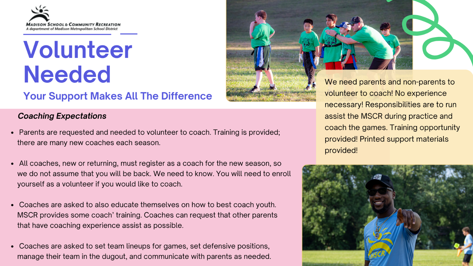 New coaches and returning coaches (wanting to coach again) must enroll as a volunteer (coach).